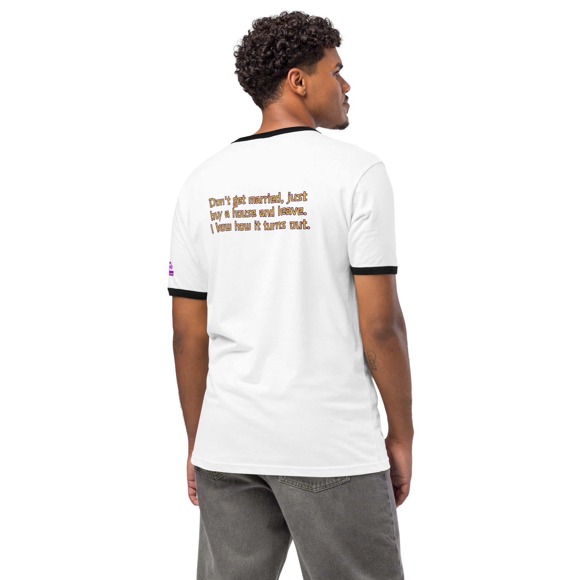 Buy a House and Leave, original by Biker-Beatdown. This lightweight cotton tee features a relaxed fit and contrast trims that give it a retro look. Wear it with jeans, shorts, or joggers for a laid-back everyday look.
